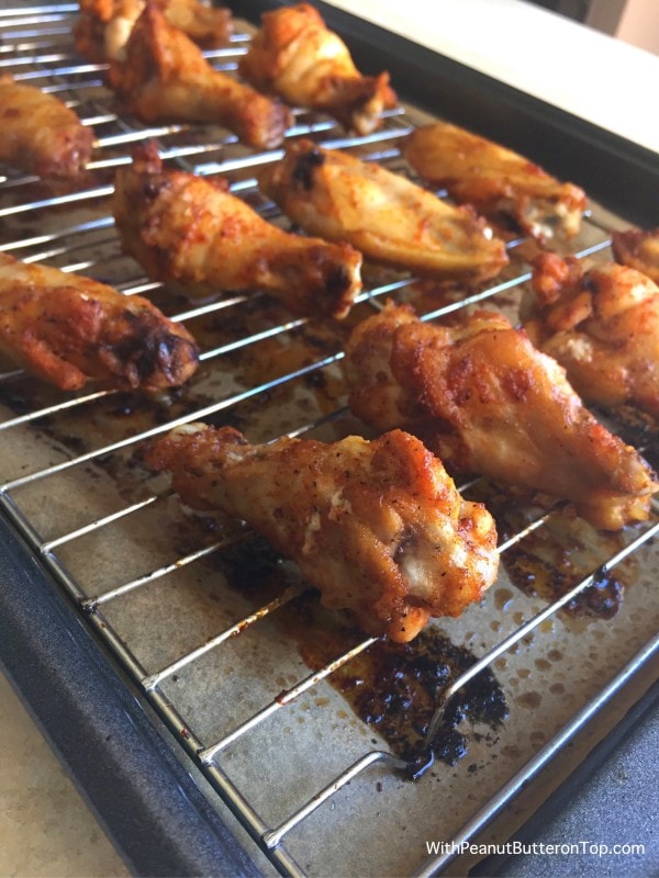 - Place the wings back onto the rack and into the oven under broil. Be sure to watch during this time! You want the to crisp/brown up slightly, but they will burn or dry out rather quickly if you're not watching them.